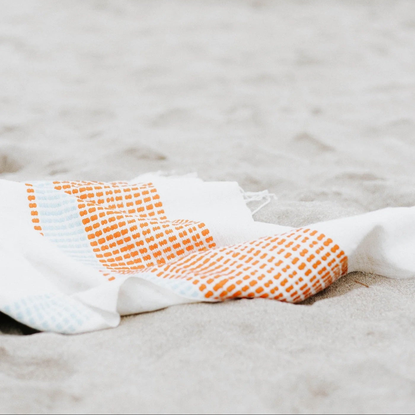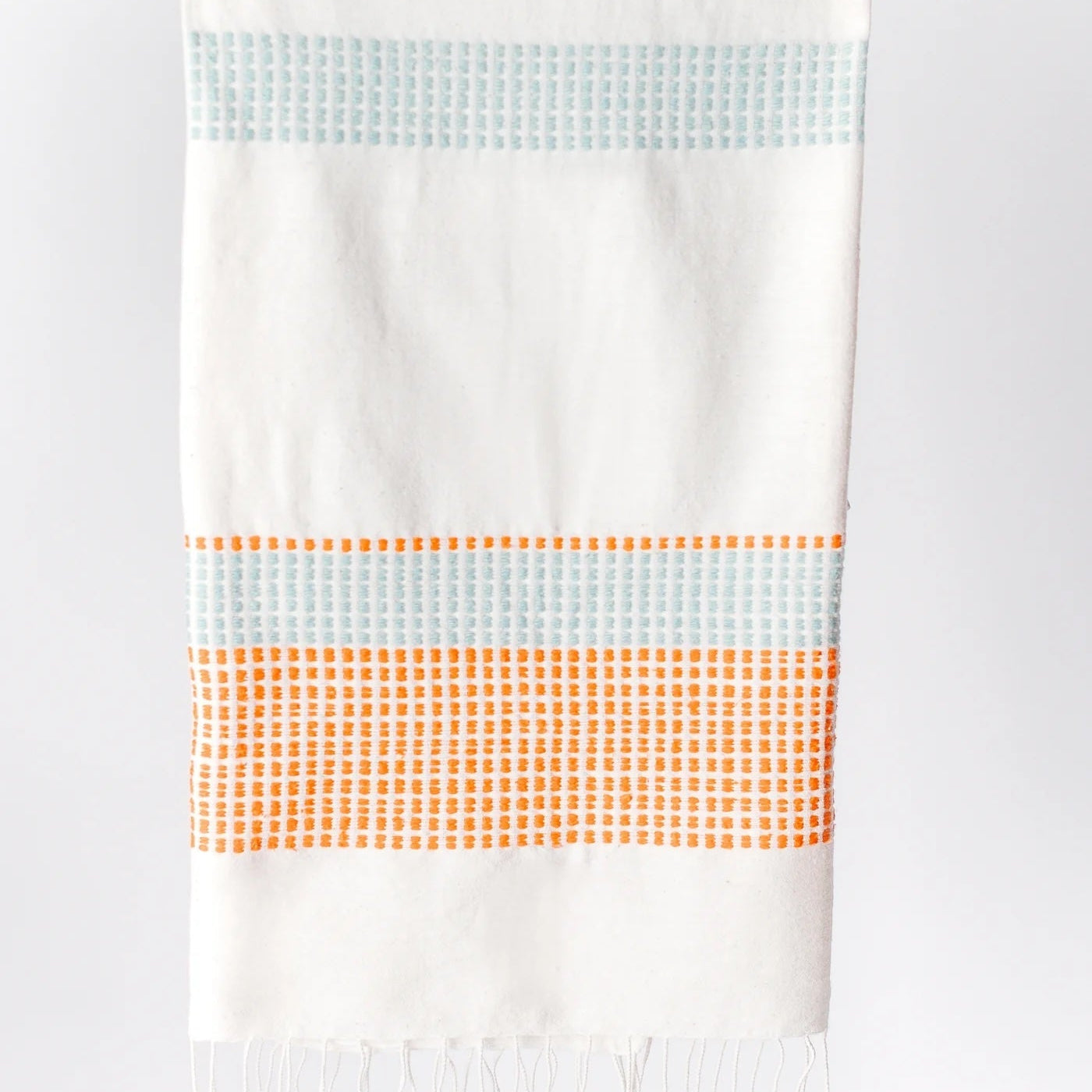 The Camden Collection pairs vibrant azure blue with bold dotted blocks of complementing colors. These versatile artisan-made textiles can be used as bath towels, lightweight shawls and accent throw blankets. Each is hand-woven in Ethiopia using time-honored weaving traditions and AZO-free dyes. Hand-spun Ethiopian cotton adds a uniquely rich texture that will continue to soften and become more absorbent with each wash/dry. Yes, it's machine washable!