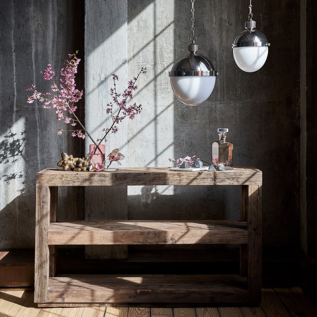 Grounded, solid and substantial. Our Carson Wood Console Table Small brings balance and proportion to open living and dining areas. The generous surface offers ample display space for decorative pieces while two open shelves hold it all. Made of sustainable reclaimed wood, this console makes a strong statement in a shorter size that flexes to fit any space.