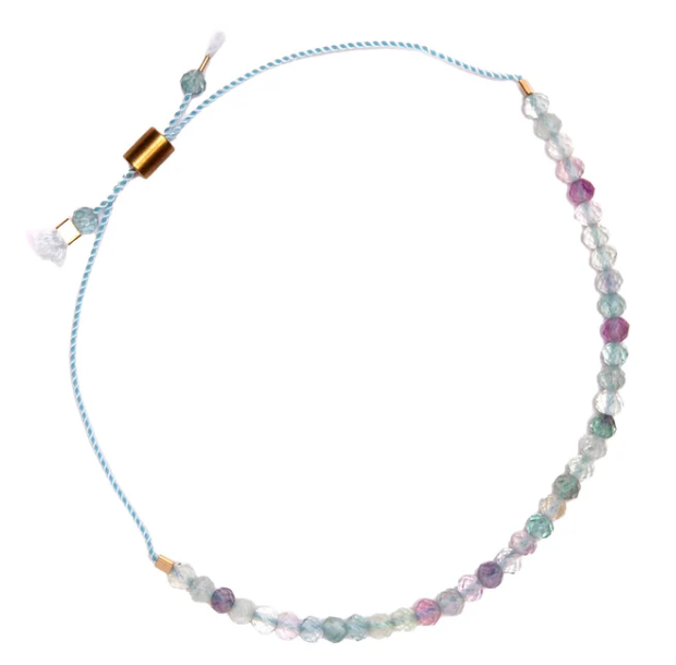 Fluorite stone 9" adjustable bracelet. Gemstones approximately 3mm thick.