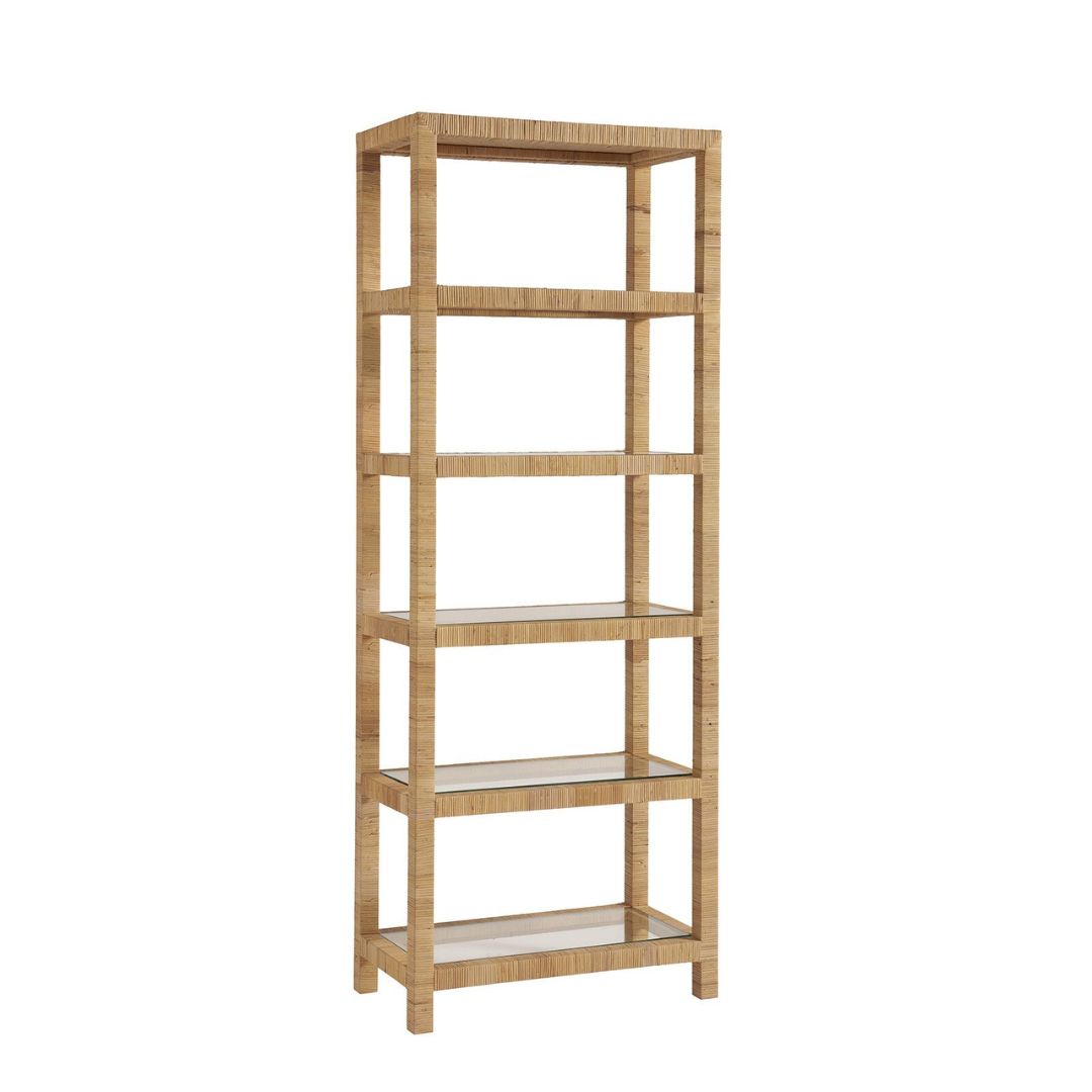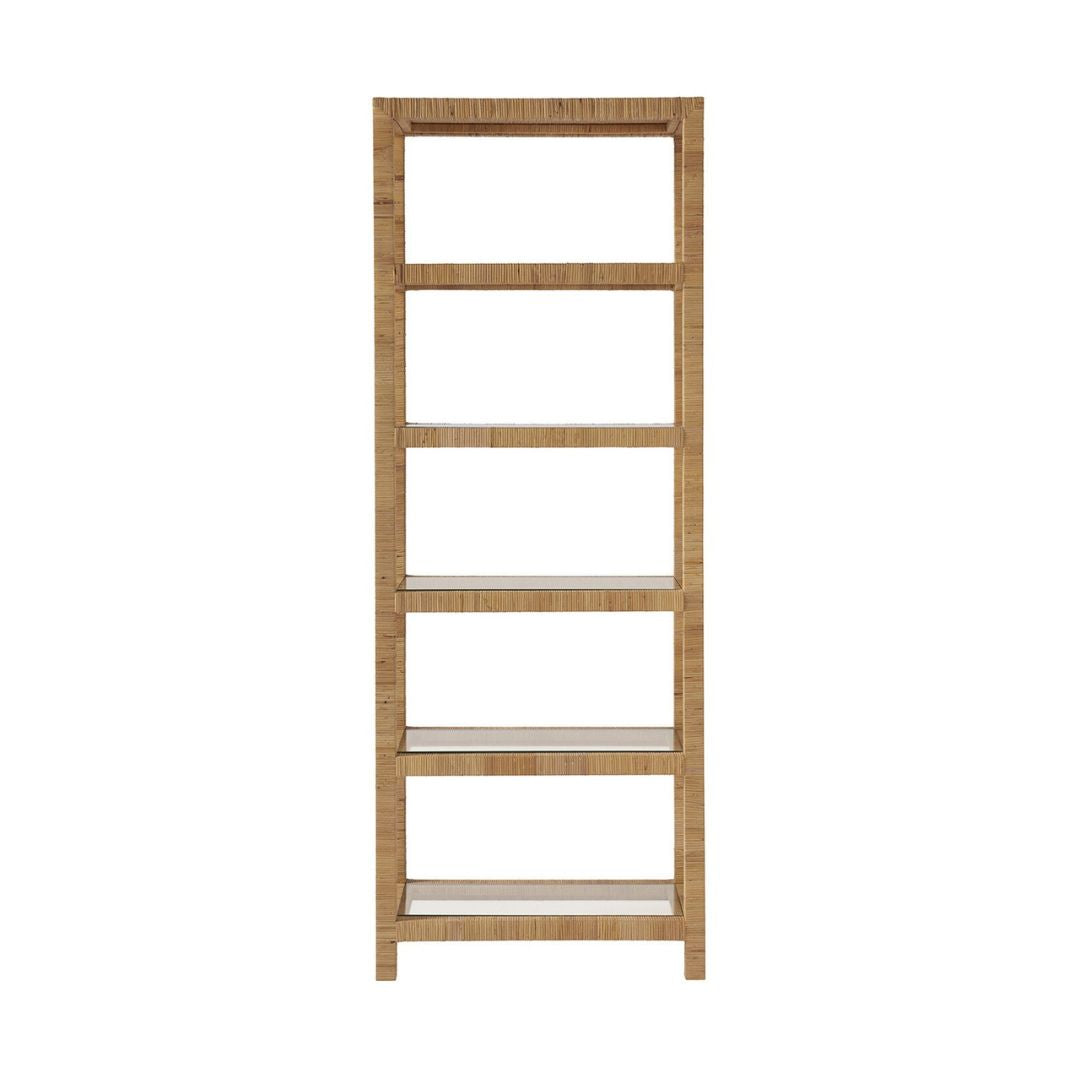 With five glass display shelves designed within a wrapped rattan frame, the Long Key Etagere offers both a gentle repose as well as a convenient space for books, small trinkets, and other home accessories.