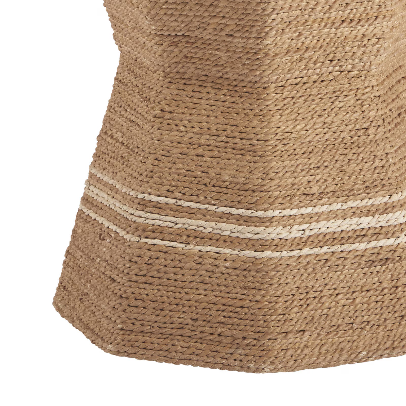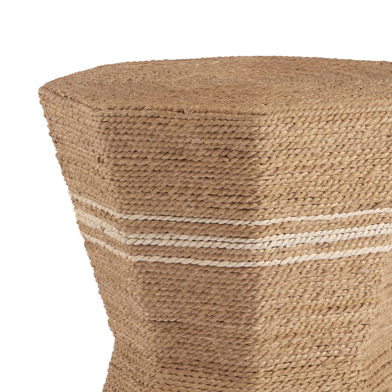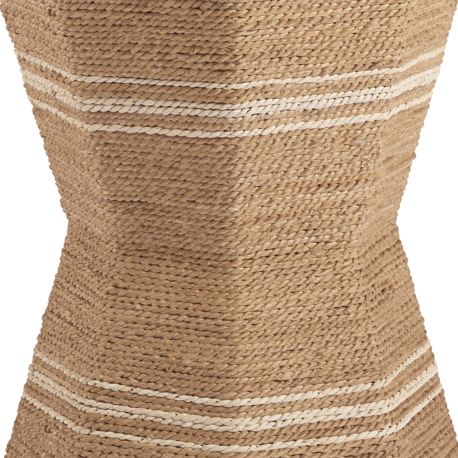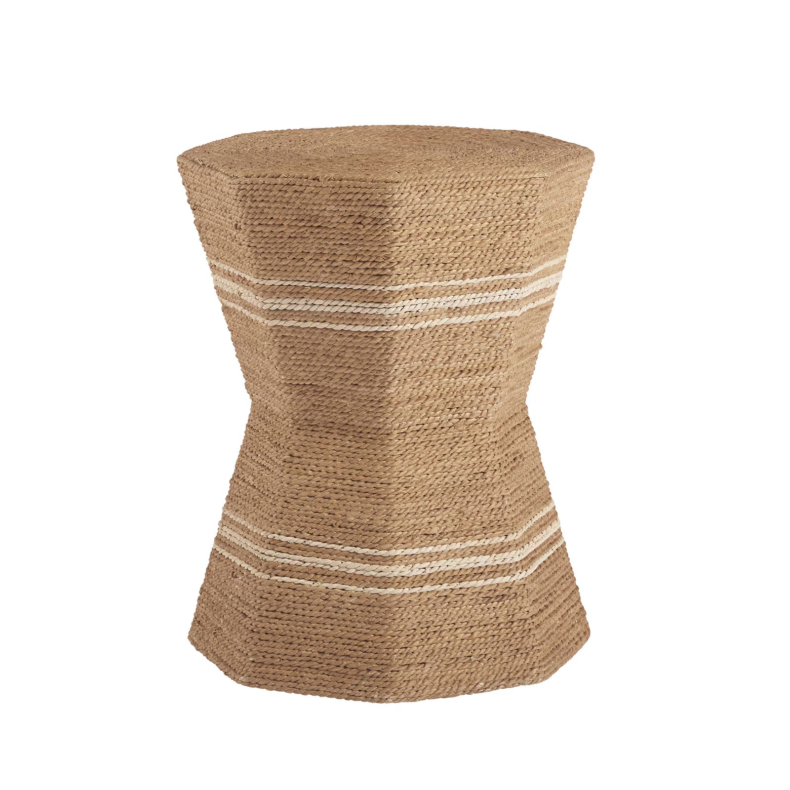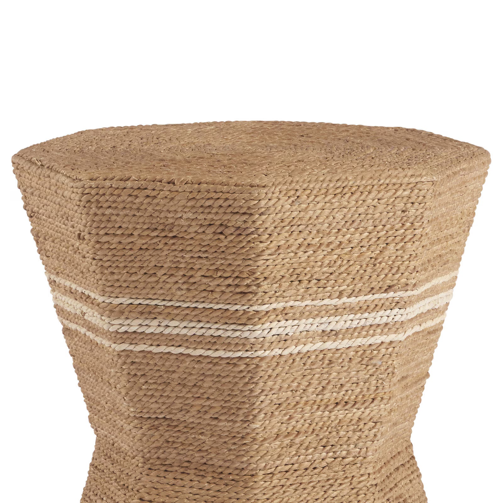 The Octagonal Side Table showcases a uniquely inverted pedestal shape encased in layers of wrapped abaca, creating a pleasant accent piece with delightful two-tone details.