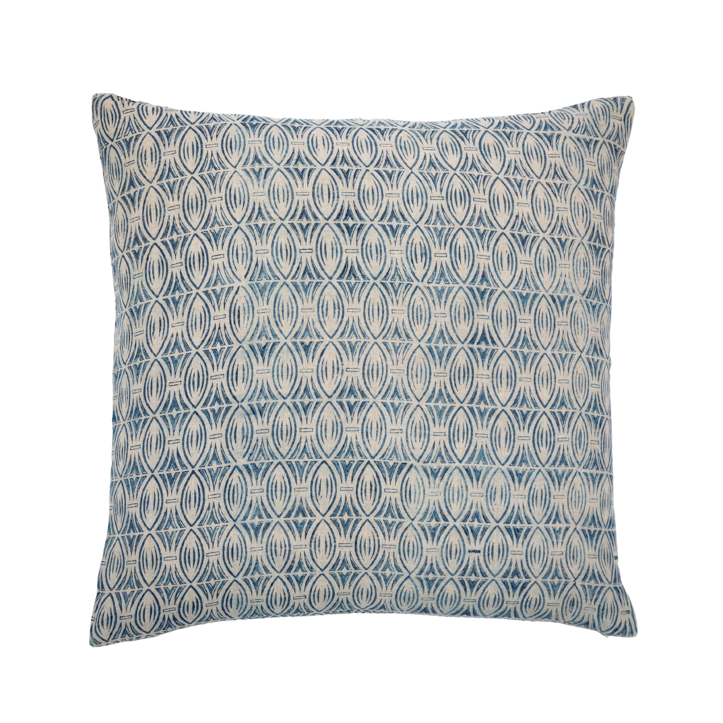Inspired by textiles from Africa, this eye-popping pattern is striking in indigo. 20″ x 20″ Knife edge decorative pillow cover. Hand screen printed by artisans. Due to the nature of hand printed fabrics, variation in color and pattern may occur. Handmade in India.