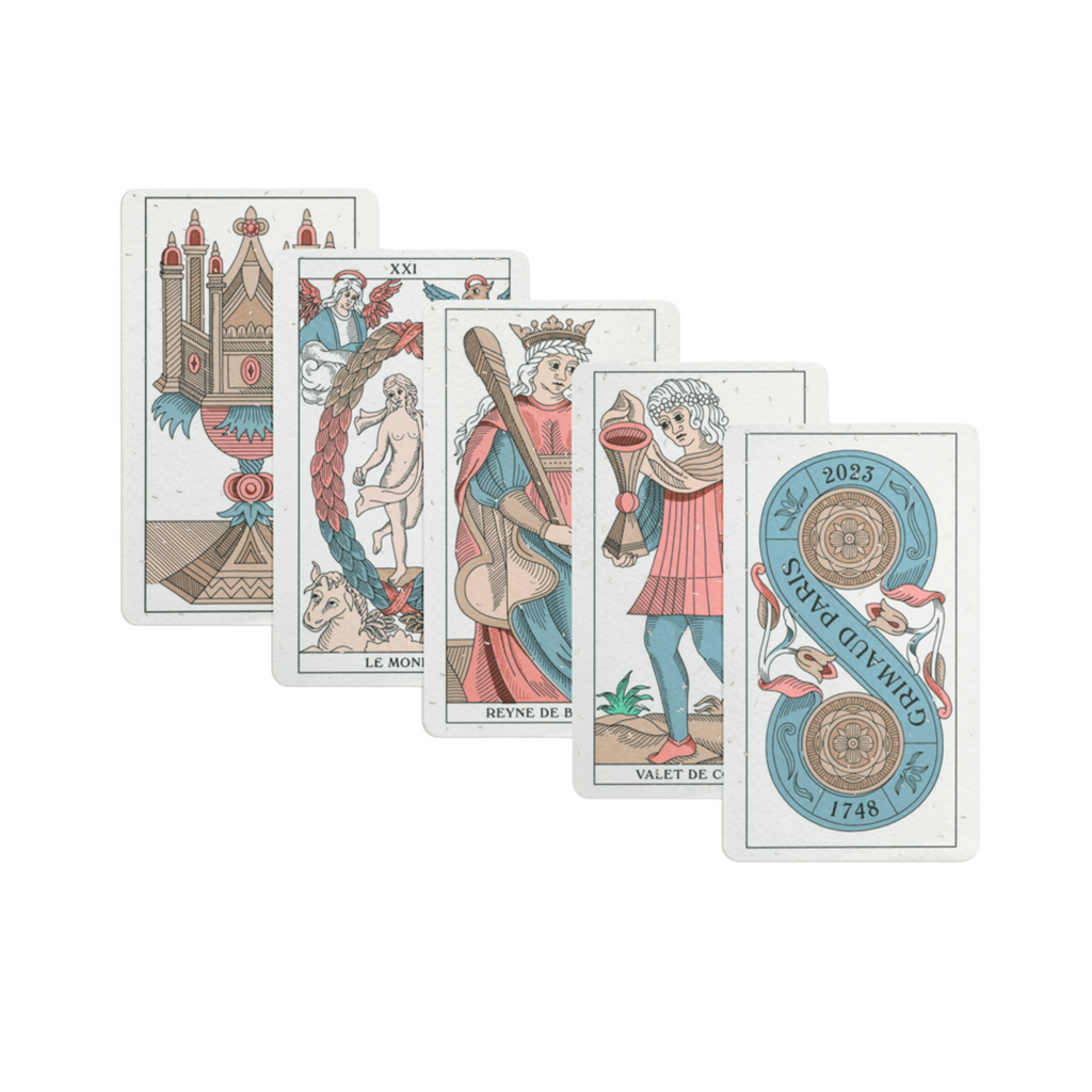 Discover the timeless magic of the Tarot de Marseille with Grimaud’s New Edition — a beautifully restored 78-card deck that honors the original woodcut style. Perfect for daily draws, it’s your invitation to connect with centuries of tarot tradition in a beautifully restored design. Let each card connect you to a rich tarot tradition.