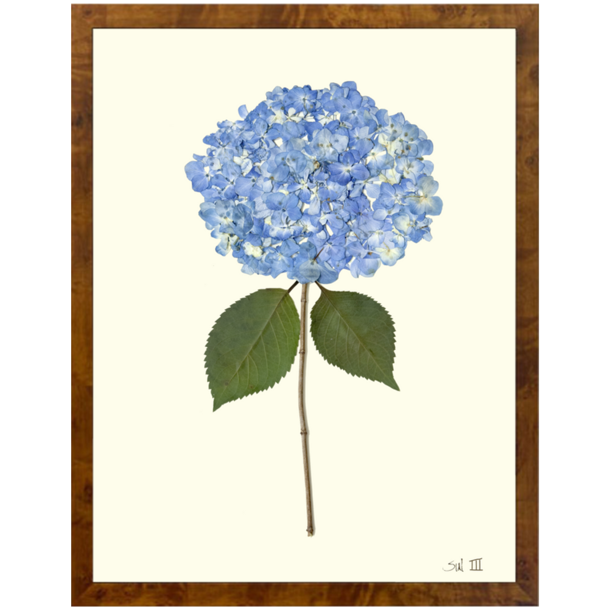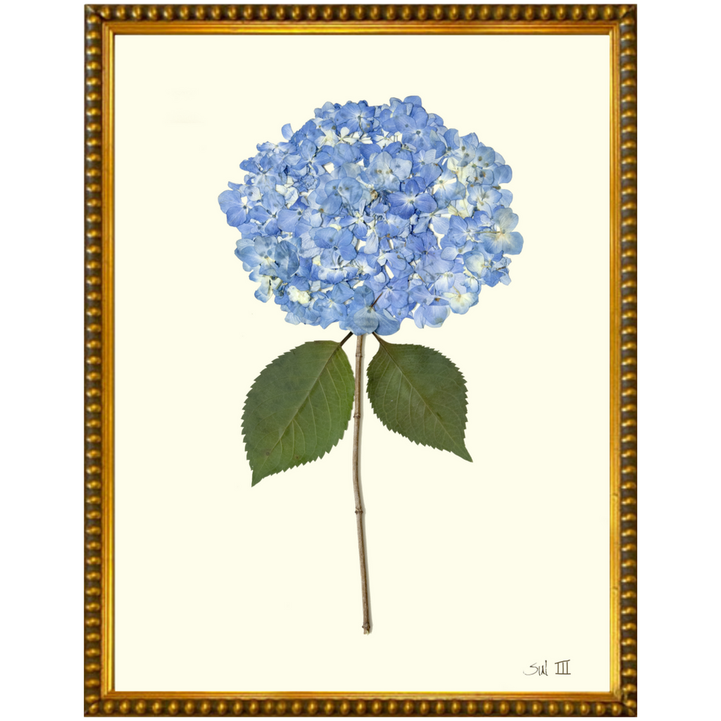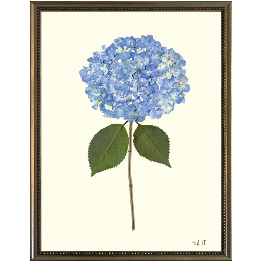 The Hydrangea III is a refined botanical giclée print that captures the timeless elegance of blue hydrangeas through botanical pressings. This archival-quality piece is available in various sizes and framed options, including burelwood, silver bead and gold bead, ensuring a perfect fit for any décor. Ideal for adding a touch of serenity and natural beauty to your space, Hydrangea III brings the delicate allure of nature indoors