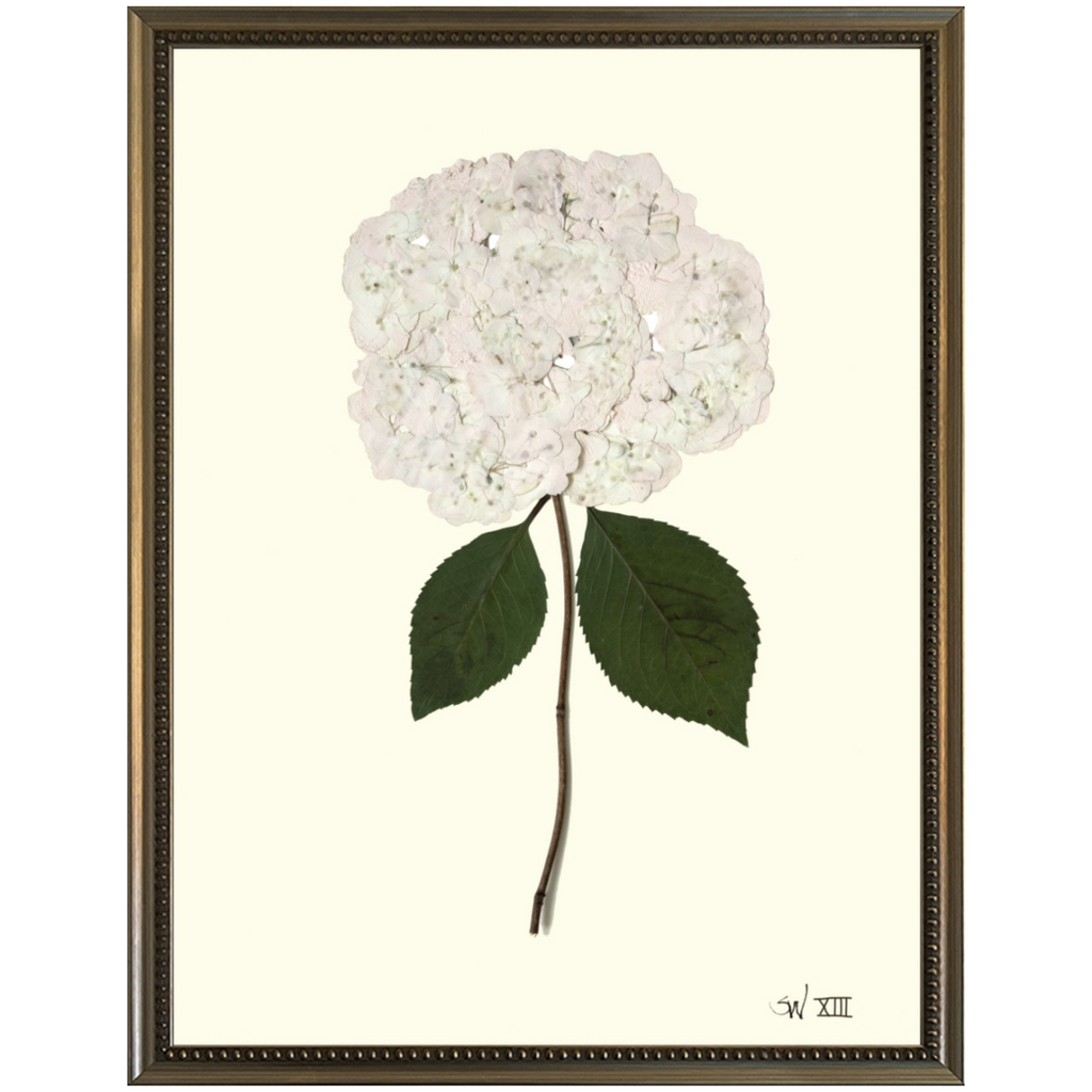 The Hydrangea XIII is a refined botanical giclée print that captures the timeless elegance of white hydrangeas through botanical pressings. This archival-quality piece is available in various sizes and framed options, including burelwood, silver bead and gold bead, ensuring a perfect fit for any décor. Ideal for adding a touch of serenity and natural beauty to your space, Hydrangea XIII brings the delicate allure of nature indoors